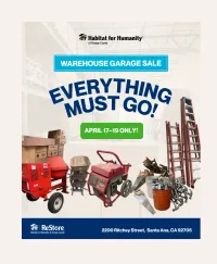 ReStore Warehouse — 2200 Ritchey Street, Santa Ana, CA 92705. This sale is in-store only, no online orders.